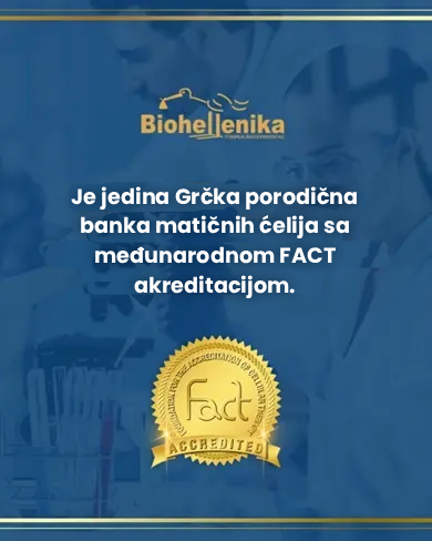 Zbog Vas, Biohellenika je dostigla maksimum sa akreditacijama i sertifikatima u oblastima čuvanja tkiva i krvi, što je čini jedinstvenom -FACT (Foundation for the Accreditation of Cellular Therapy), Američka asocijacija banaka krvi, GMP sertifikat, ISO 9001 i dr.